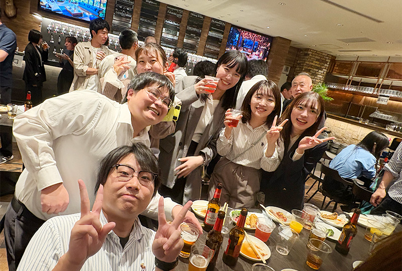 年に数回グループ会社合同で食事会や懇親会を催しています。業務を離れ、部門・グループ会社の垣根を越えてコミュニケーションを深める良い機会になっています。